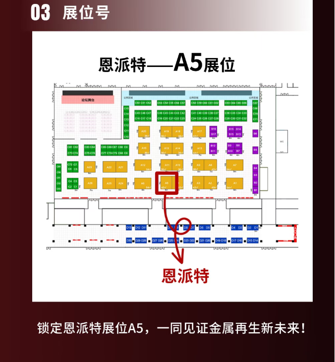 11月7日至9日,作為深耕再生金屬處理設備領域的實力企業,恩派特將深度呼應“再生無界、全球共贏"的展會主題,攜金屬切屑再生回收核心設備,重磅亮相本次CMRA展會,共探再生金屬產業新未來!